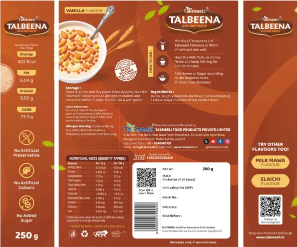 Takmeeli Talbeena With Dry Fruits – Vanilla Flavour Premium Pack 250g